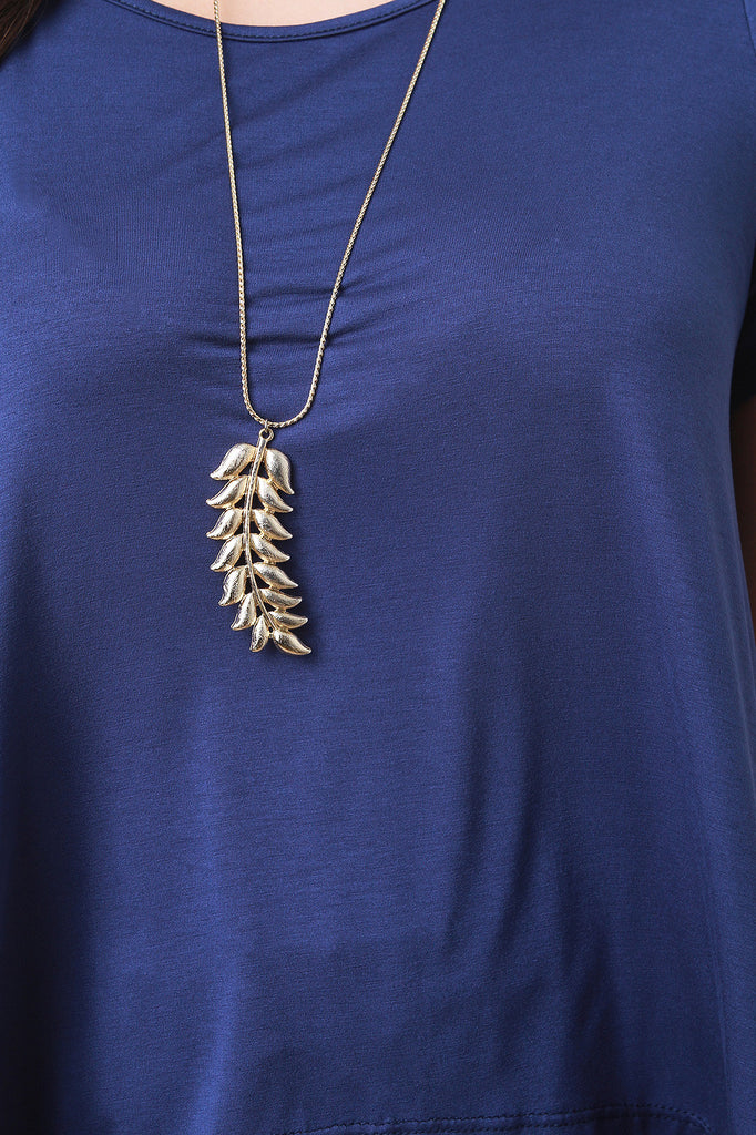This breezy high-low top features a navy jersey front, two-tone chevron chiffon back, round neckline, and short sleeves. Accessories sold separately. Made in U.S.A. 95% Polyester, 5% Rayon.